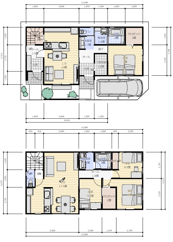 完全分離型2世帯住宅の間取りをお願いします。
